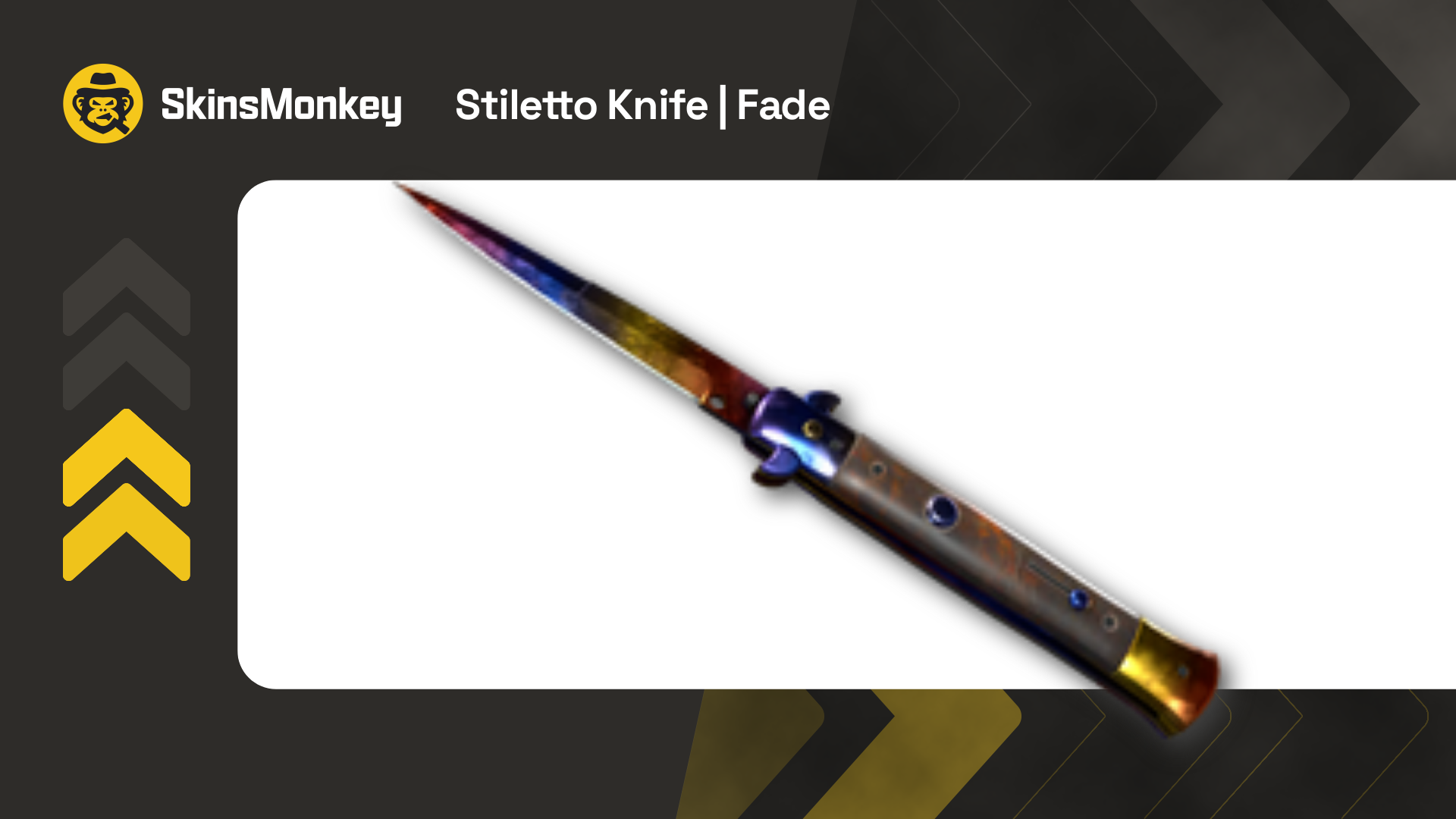 Fade Knives are the most expensive knife skins CS2 has to offer. Because of this, Stiletto Knife Fade also comes at a steep price. Still, the Fade weapon finish looks amazing on the Stiletto Knife, so if you want something to really improve your looks, this knife is the skin for you.