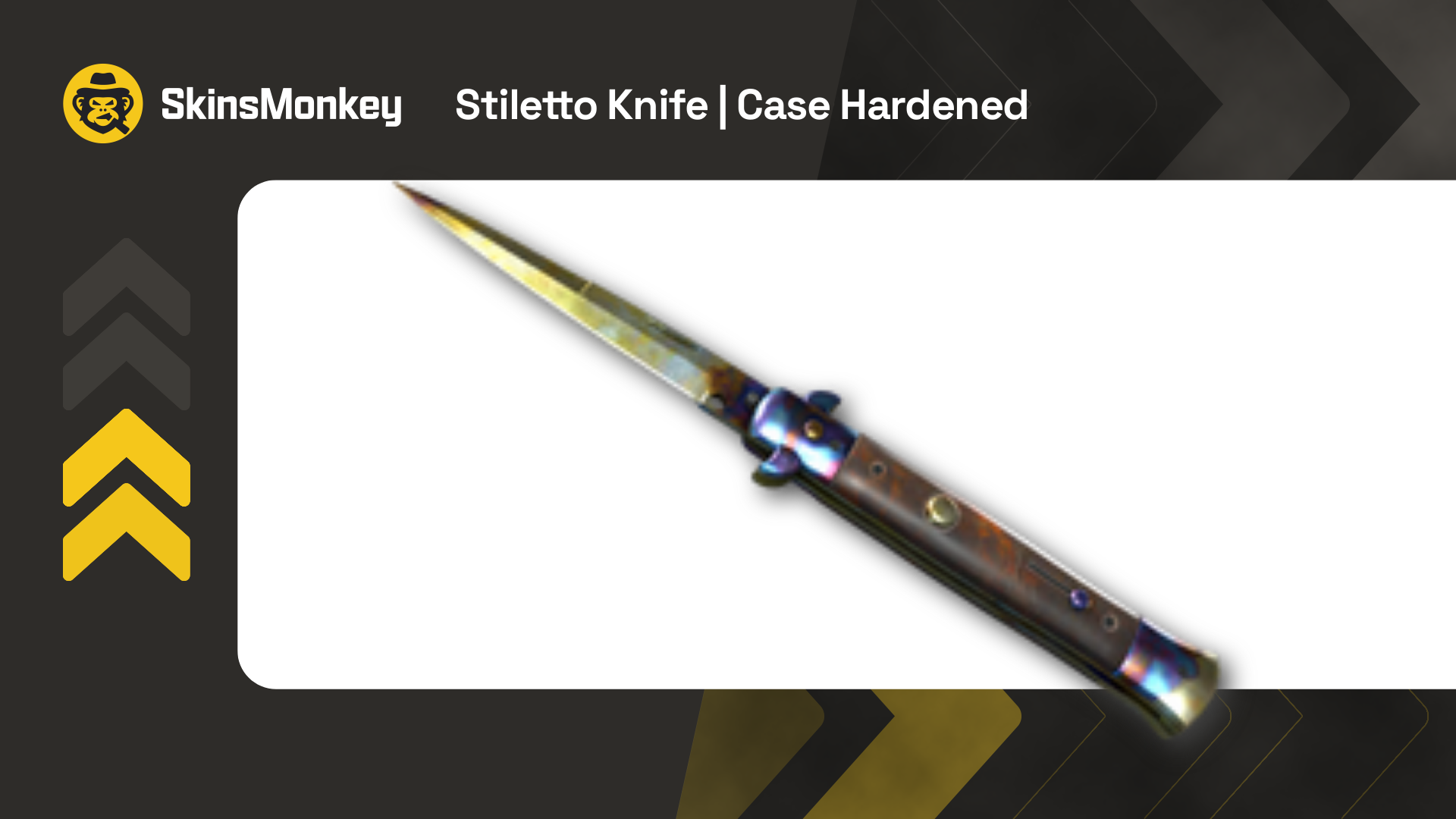The Case Hardened Stiletto Knife skin isn't that expensive, but will still cost you a pretty penny. Cheapest Stiletto Knife Case Hardened skins start at around $400.